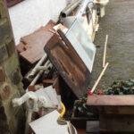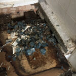 June’s bathroom is now taking shape after a pause for thought (finished pics next time). Having decided that the pipe work is to be in the main bathroom behind a false wall, I can clad the walls flat without lumps and bumps for existing pipes. After much effort attacking the shower, the true condition of the installation was revealed. Warning, the photos have a health warning like the real thing! I did not expect to find an old mouse/rats nest under the shower, but there again, I did find the husk of a rodent trapped under some pipes and looking at the size of the nest and material, it might well have been a rat. This sort of ties up with the electricians comment back in August about rats droppings in the loft. The wall cladding is going up well and I’m using “Sticks like sh*t” – the actual name – and it does. The plastic planks are 250mm wide and only need a few mm trimmed. I feel the shower tray is going to be a challenge to fit due to its weight and moving it in a tight space. It’s not as if you can get two people in there anyway.