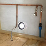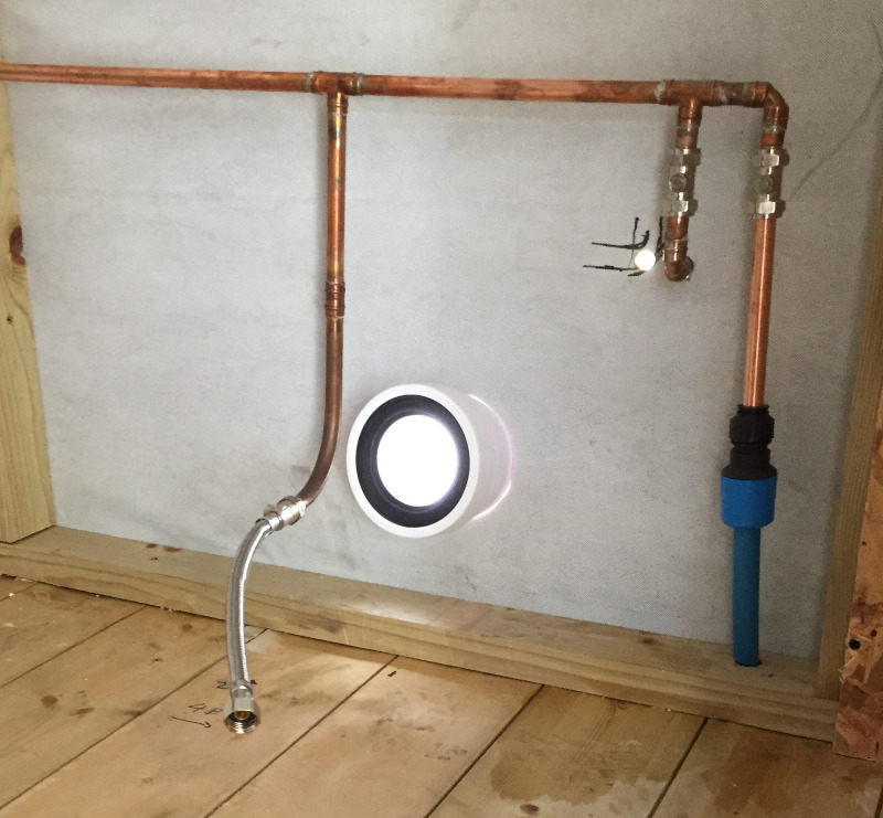 I have decided recently that I basically hate plumbing. The simple bit of cold water plumbing for the chalet has tested my knowledge to the limit with weeping compression joints for over a week while trying more drastic solutions. The leaks had to be fixed as the pipes were being buried behind the wall cladding and therefore inaccessible. After trying PTFE tape and jointing compound, I resorted to YouTube for guidance and after replacing the copper tails and new olives, plus PTFE tape, they finally became leak free. Cloakroom plumbing sorted, I just need to dig a trench and cut into sewage manhole – making sure all tools are firmly attached to bits of string.