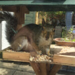 It looks like the plum trees will be coming down before next season. The Victoria plumb was doing nicely and about a week ago was laden with almost ripe fruit. Four nights ago I went out and picked 3 ripe plumbs by torchlight (when the wasps sleep). June eat them and they were perfect. I went out last night to gather in the harvest and picked 8, I repeat just 8, as that was all that remained. The guilty parties were a magpie, seen running across the lawn with a plumb in its beak, and the squirrels, spotted sitting in the tree chomping on the fruit. The main culprit is currently sitting on the bird feeder two feet from where I am sitting, she’s watching me through the window and snacking on muesli – not a care in the world. The other plumb tree is more of a greengage, currently plastered with unripe fruit, just waiting to be stripped by thieves.